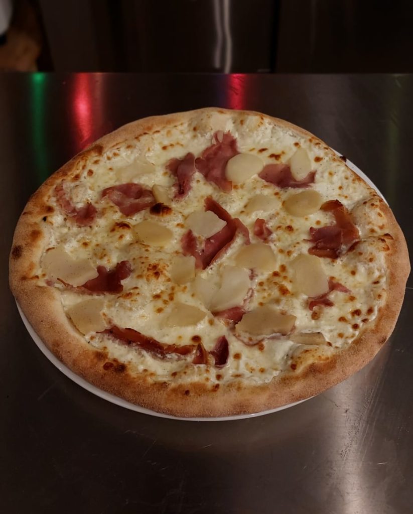 Base Tomate, Mozzarelle Française, Jambon Sec Artisanal, Meule Dent du Chat, Poivre Noir, Huile au Piment d’Espelette