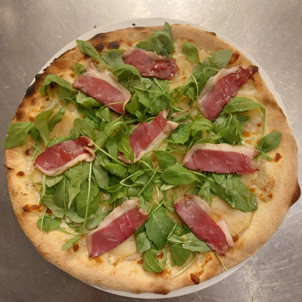 Base tomate, Mozzarelle Française, Jambon blanc artisanal, bleu de sassenage aop, roquette