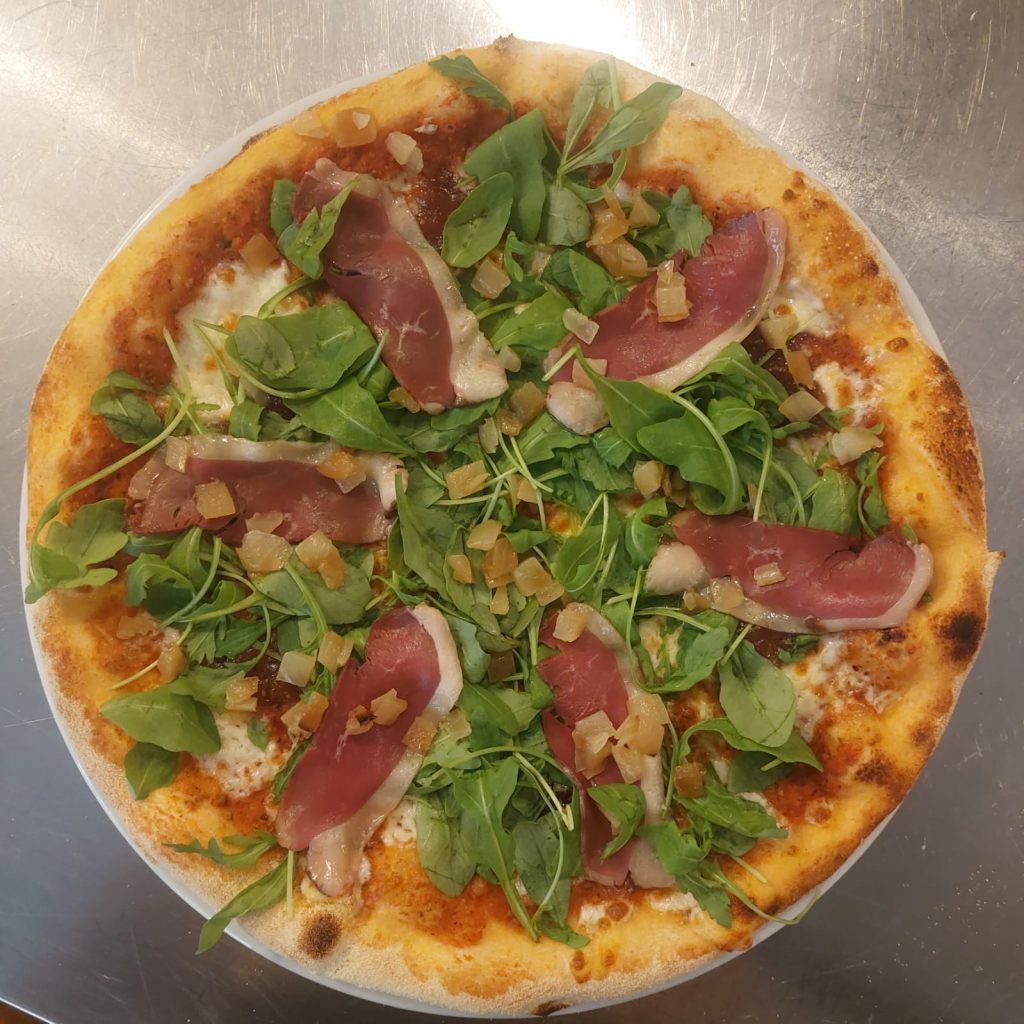 Base Tomate, Mozzarelle Française, Chutney de Figues, Roquette,